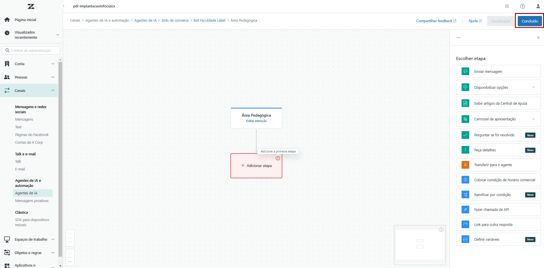 No vídeo a seguir, demonstramos como criar o fluxo de conversa na Zendesk.