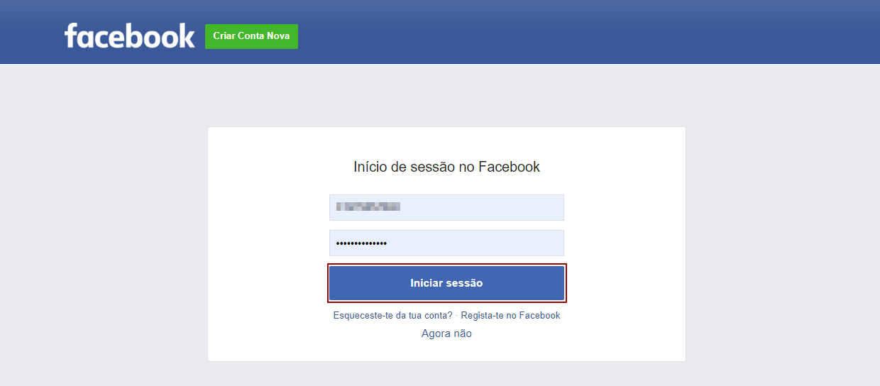 5) Será aberta uma nova página com a URL do Facebook Business. Inicie a sessão com as credenciais (login e senha) do perfil que possui permissão total na página do Facebook Business da empresa.