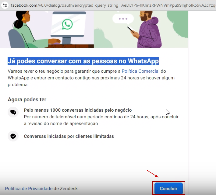 🚀 Pronto! A integração do WhatsApp Business realizada com sucesso!
