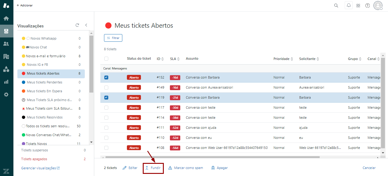 Vamos agora detalhar como realizar a Fusão em massa de tickets.