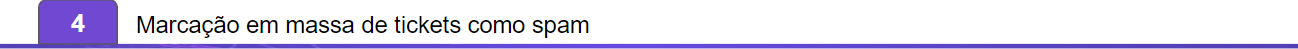 E finalmente o gerenciamento em massa também possibilita que membros de equipe marquem um conjunto de tickets como spam. Vamos entender melhor sobre essa tratativa no próximo bloco.