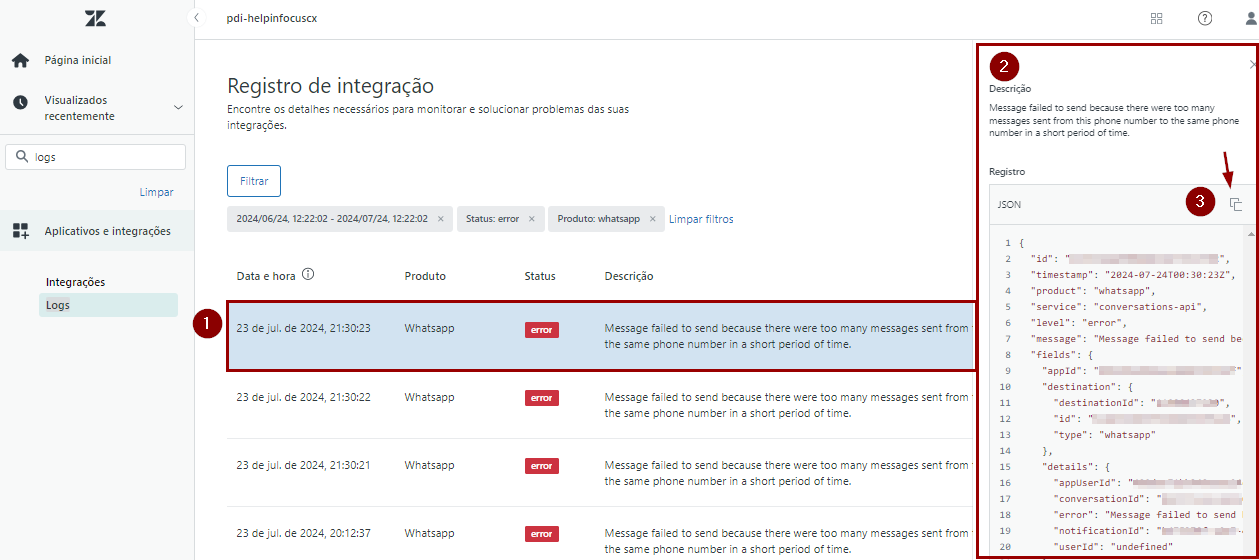 Para apoiar a análise desses casos, será utilizado o recurso Logs da Zendesk. Vamos entender como acessar esse menu:
