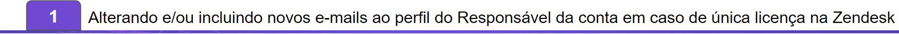 No primeiro cenário iremos compreender como alterar e/ou cadastrar novos e-mails no perfil do Responsável da conta em caso de única licença disponível na Zendesk. Basta seguir o passo a passo: