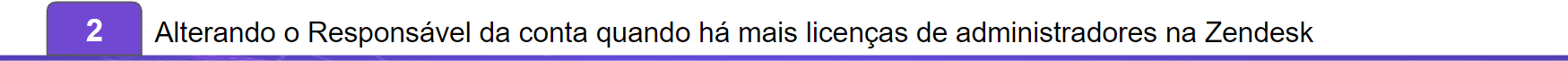 Se for necessário apenas promover a troca de e-mail do responsável da conta, siga os passos do bloco anterior. Mas se o objetivo for substituir o atual responsável da conta por um novo Administrador, consulte o passo a passo detalhado no artigo Como cadastrar e editar o responsável pela conta e administrador de faturamento na Zendesk.