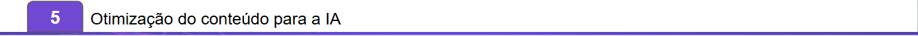 A otimização do conteúdo para a IA consiste na última etapa, já que o mapeamento de tópicos para a composição das categorias, seções e artigos precisa ser estruturada inicialmente.
