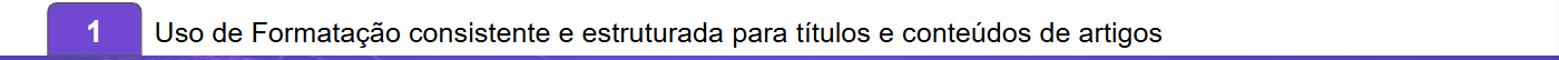 No processo de estruturação dos artigos, a primeira dica é adotar um padrão de formatação consistente e estruturado, tanto para títulos quanto para os conteúdos de artigos.