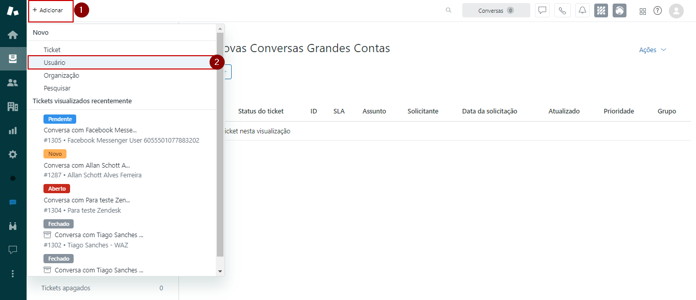 1) No menu superior, clique em + Adicionar e selecione a opção Usuário.