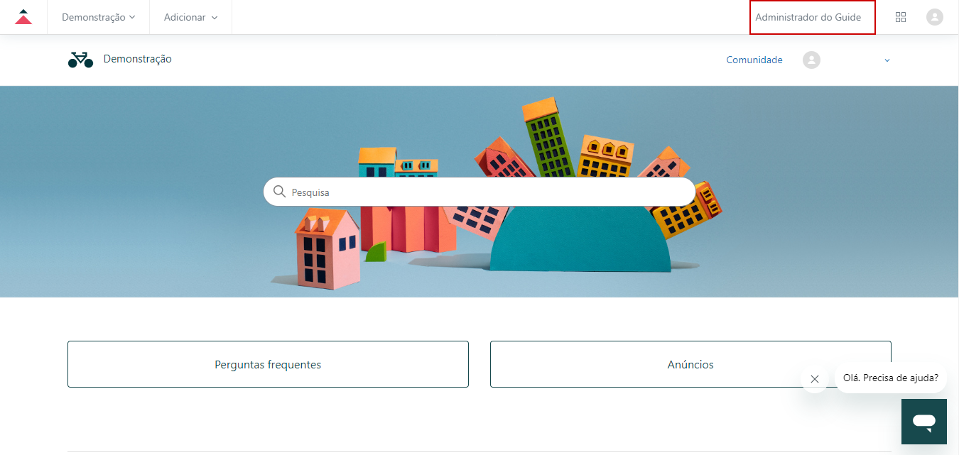 2) Na tela inicial, clique no menu Administrador do Guide.